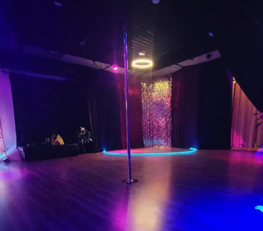 this fully functional performance studio features hardwood floor, dance mirrors, rgb lighting, speaker support, and a themed corner for shooting!